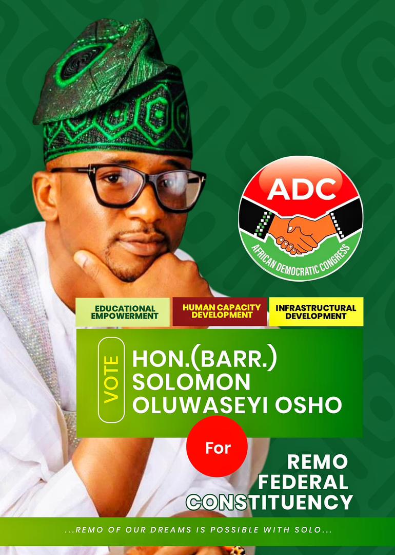 In a political climate where trust in public office holders is often low, Hon. Solomon Osho’s reputation for integrity, performance, and humility has earned him admiration across party lines. His candidacy under the ADC is not just a political move but a grassroots-driven call for tested representation — one that reflects the aspirations of Remo people for impactful and inclusive governance.